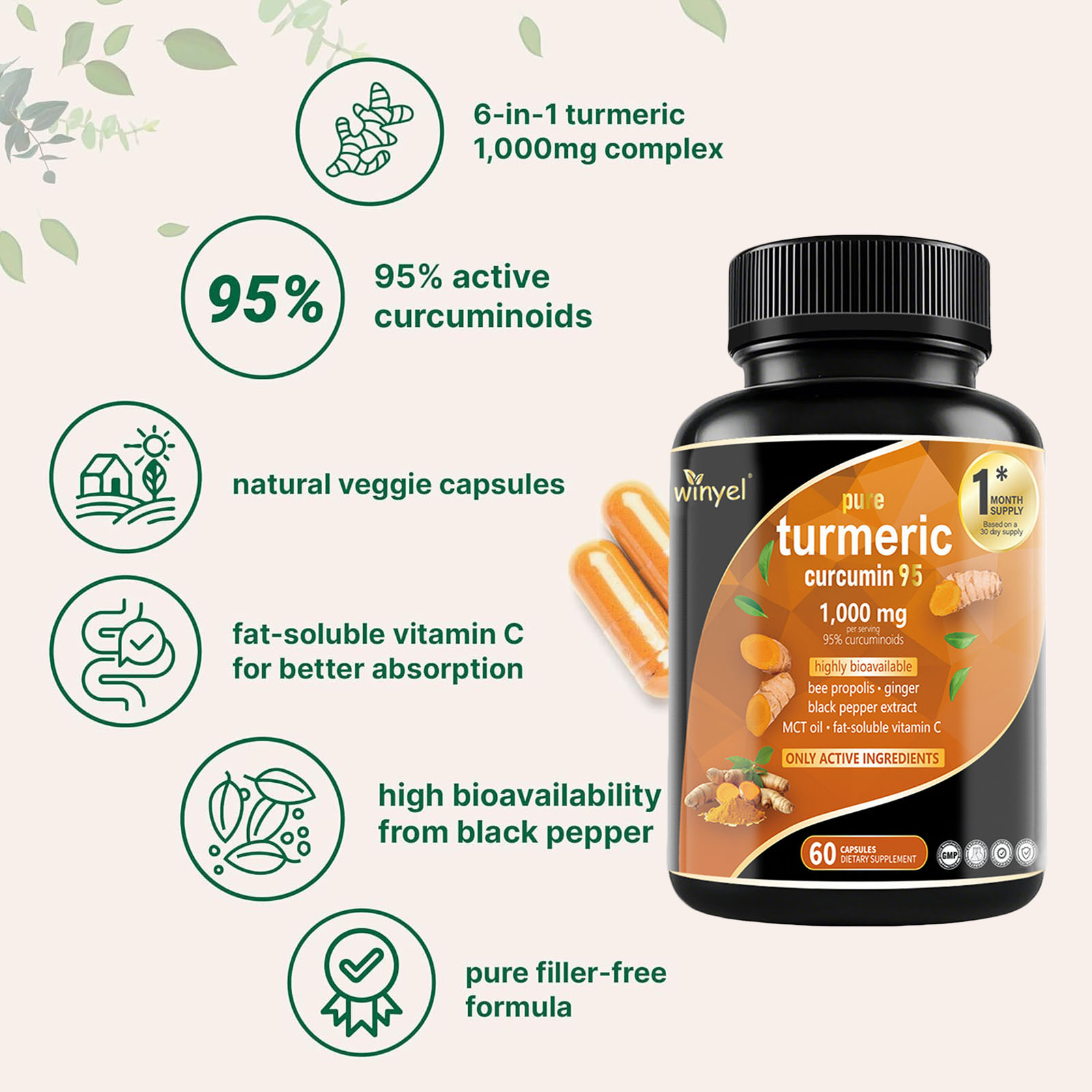 Premium Turmeric Curcumin Supplements are formulated to deliver 1000 mg of turmeric curcumin per serving with an enhanced absorption profile to support everyday wellness. Turmeric curcumin is widely recognized for its naturally occurring compounds that help support a balanced and active lifestyle.
