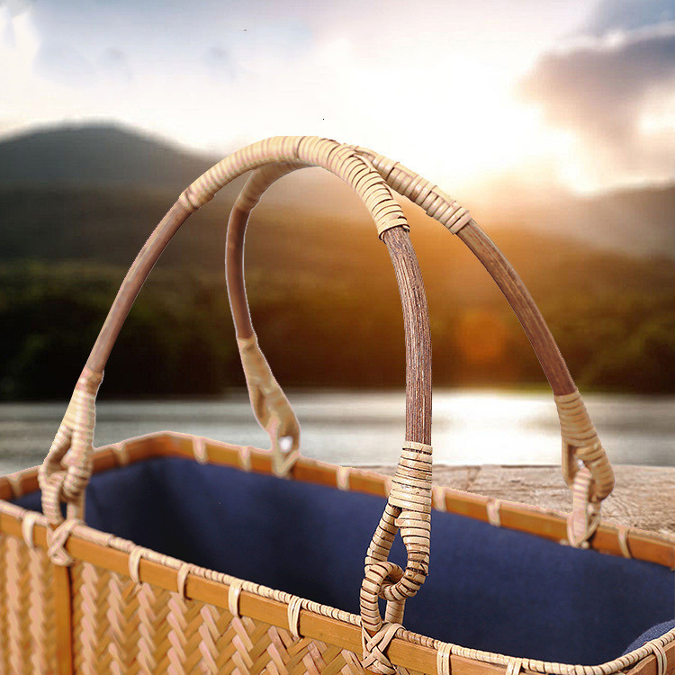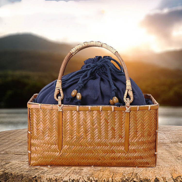 Shopping Portable Bamboo Basket And Bamboo Bag